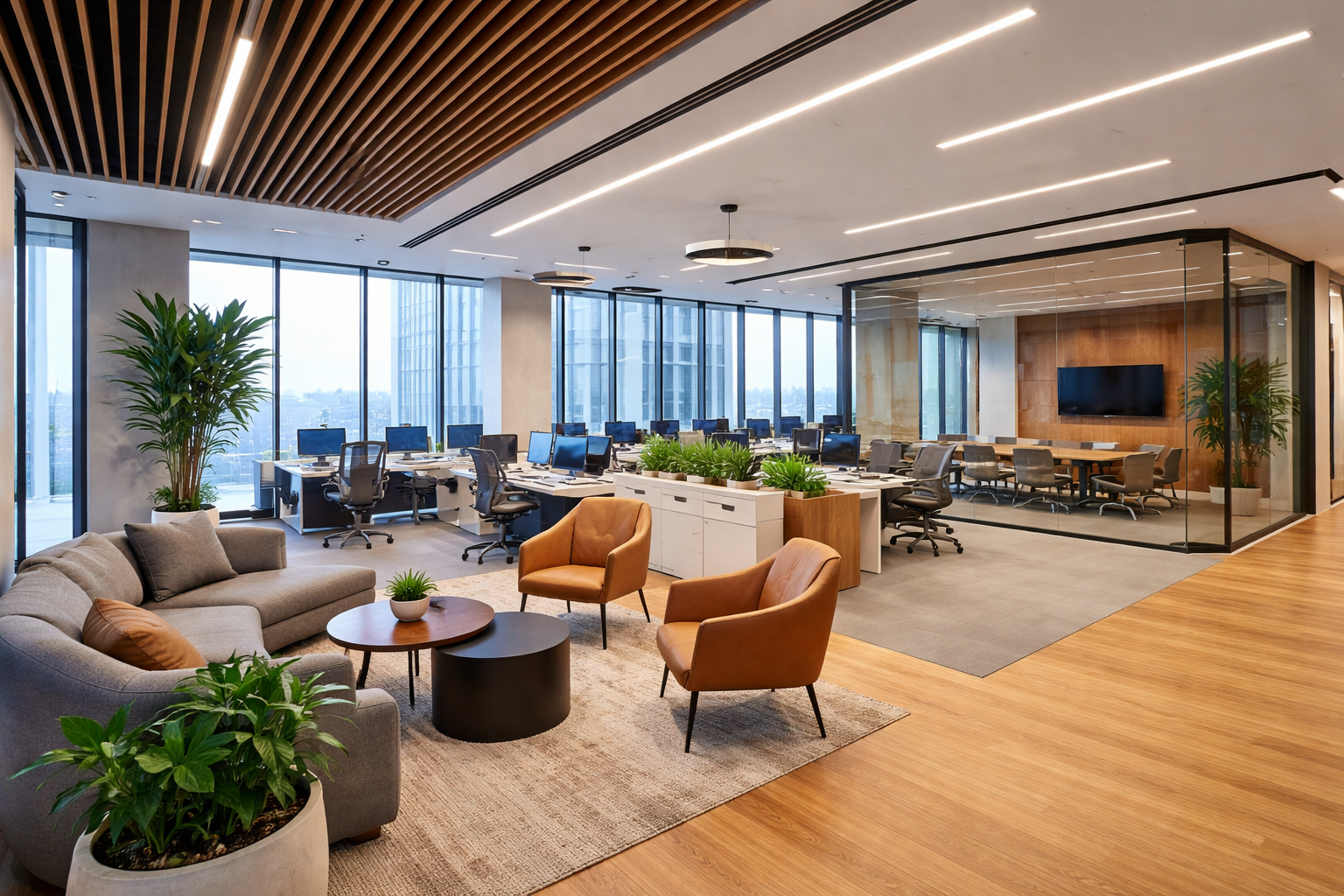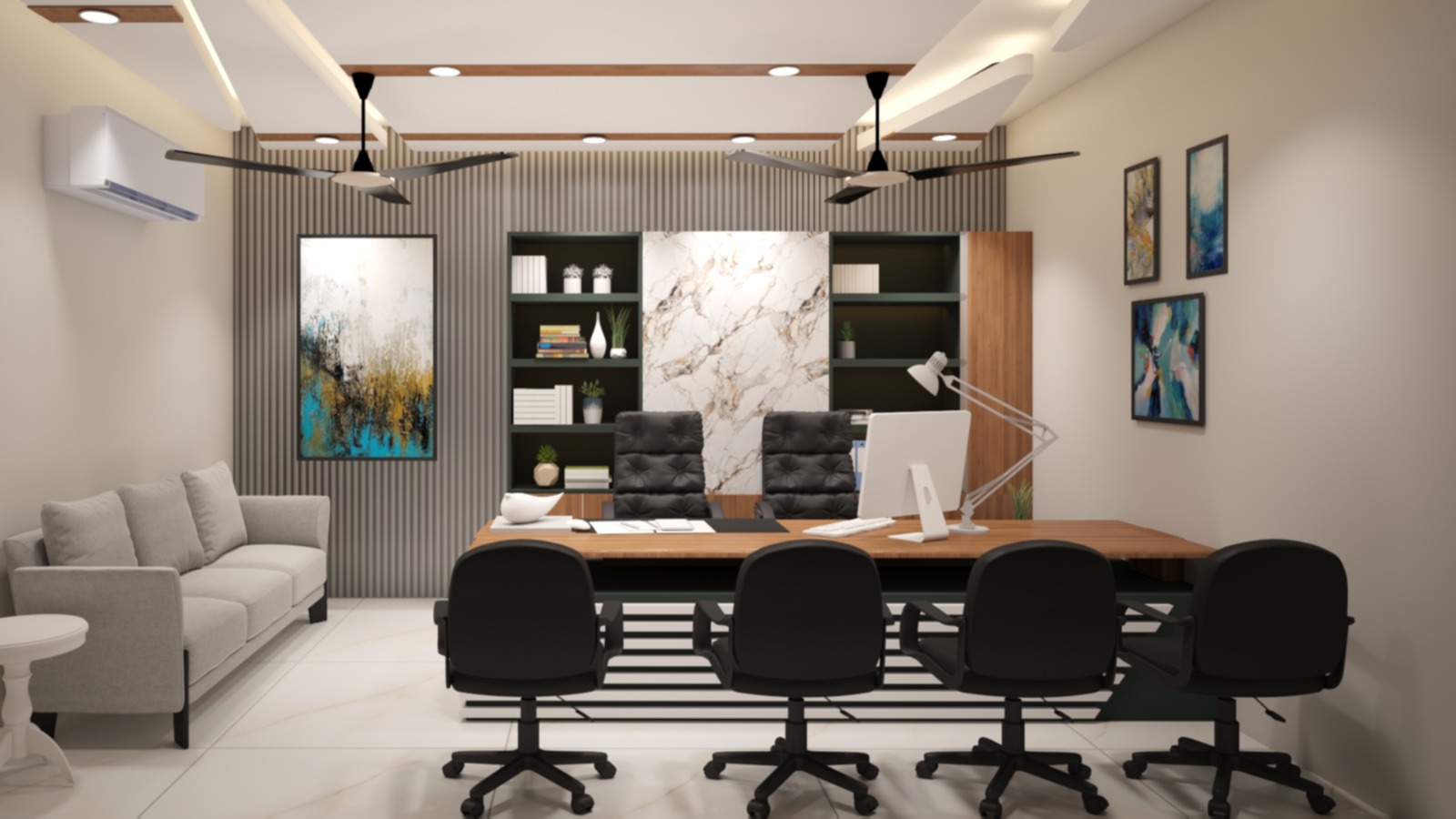 We design smart and productive office interiors that improve work efficiency and employee comfort. Our office layouts focus on proper lighting, ergonomic furniture planning and modern corporate aesthetics.